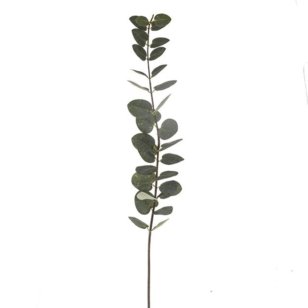 A decorative Eucalyptus stem with large individual leaves.